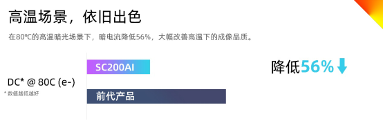 考虑到大部分安防监控摄像头都架设在室外,阳光照射加上全天无休的工作状态使摄像头通常都在高温下持续工作。因此,SC200AI不仅在成像品质上精益求精,更在高温成像性能上实现了优化,拓展产品的场景适用性。